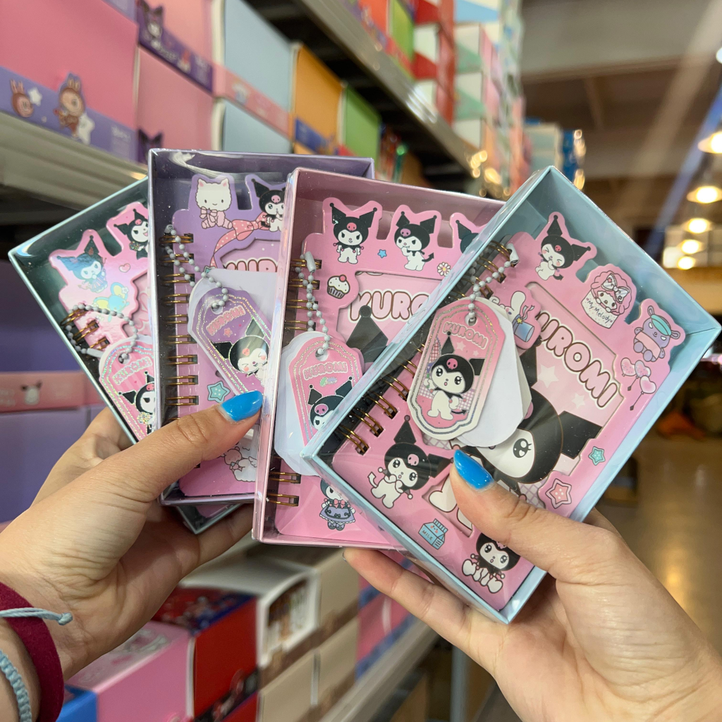 Anotadores mini con espiral y tapa dura decorada con personajes kawaii como Capibara y Kuromi. Incluyen hojas rayadas para escribir y un llavero colgante decorativo a juego. Su tamaño compacto los hace ideales para llevar en la mochila, cartera o estuche, perfectos para tomar notas rápidas, listas o ideas en cualquier momento. Con un diseño colorido y tierno, son también una excelente opción para regalar.