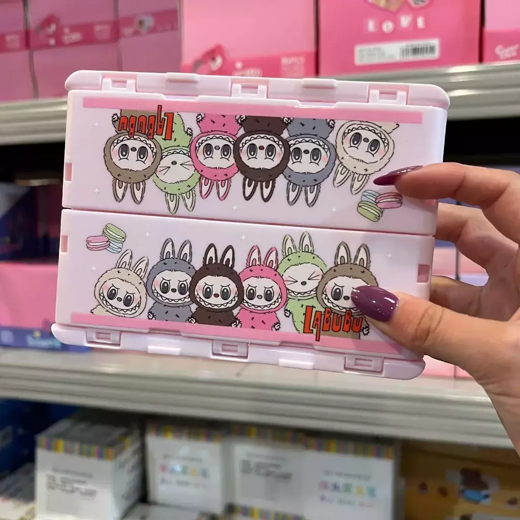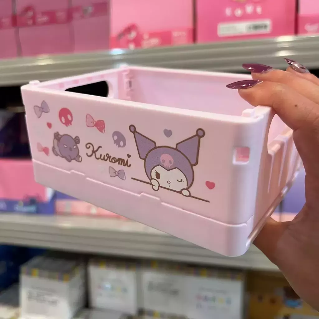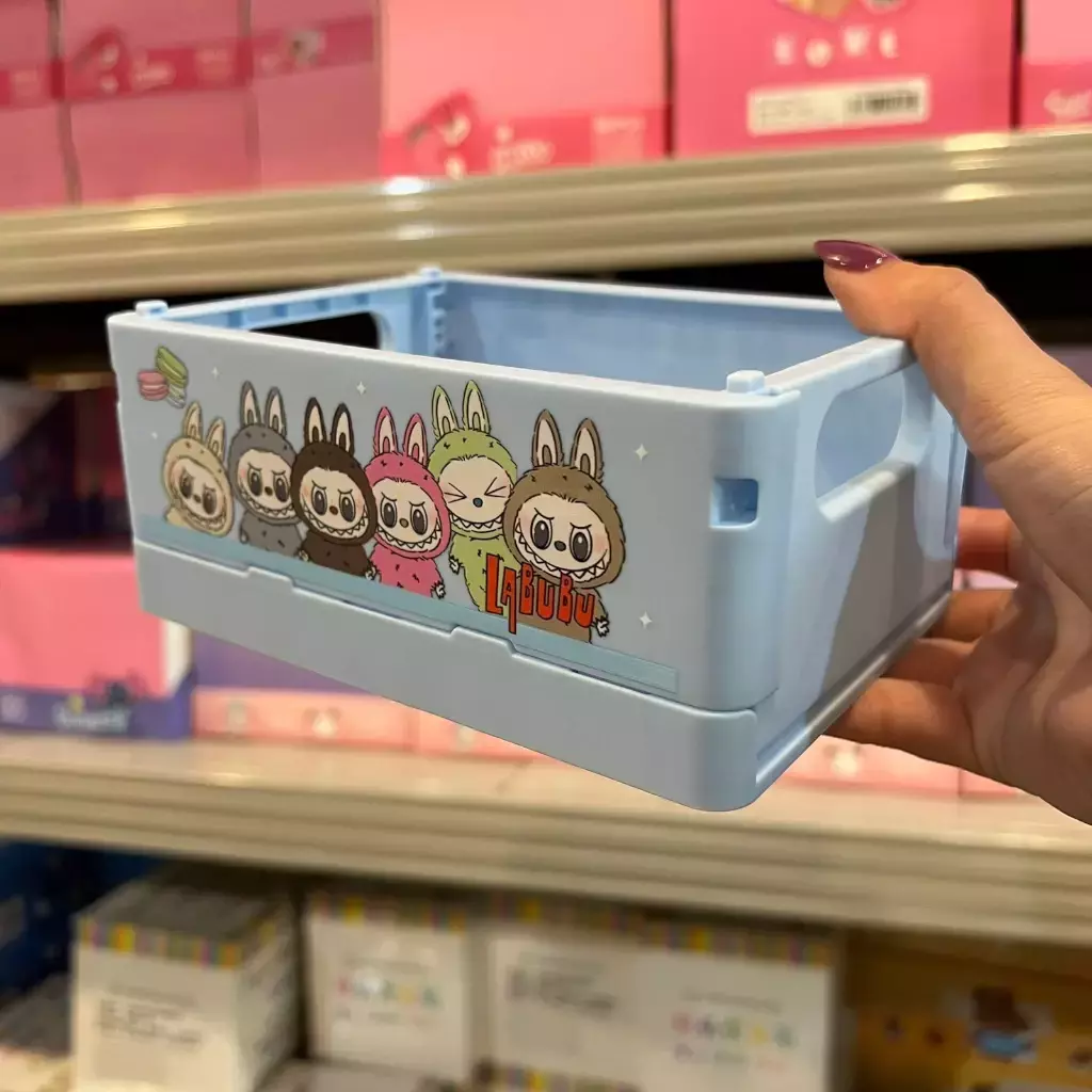 Cajitas organizadoras plegables con diseño kawaii de personajes como Sanrio y Labubu. Practicas para ordenar escritorio, papeleria o accesorios pequeños. Se pueden apilar y plegar para ahorrar espacio, combinando funcionalidad con un estilo divertido y coleccionable.