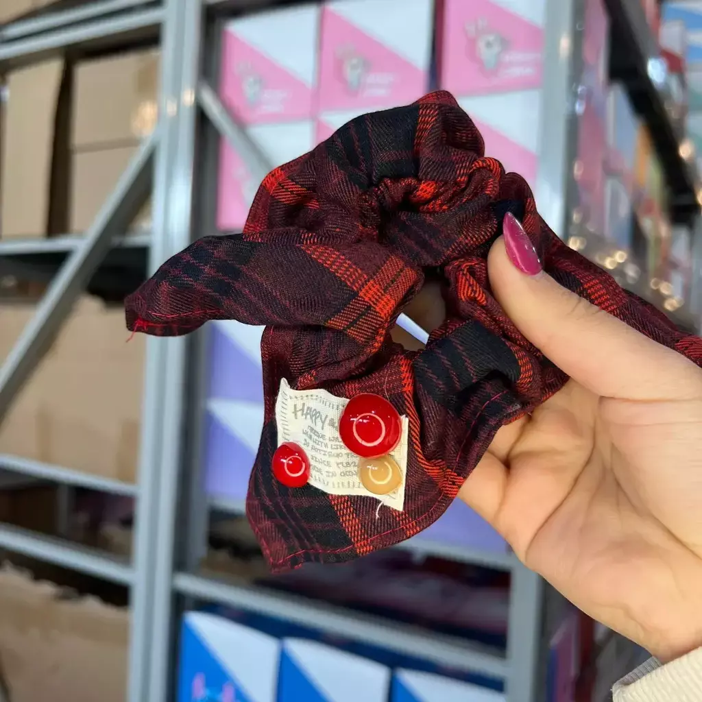 Colita elástica confeccionada en tela con estampado escocés en tonos negro y mostaza, ideal para un look moderno y original. Incluye detalle decorativo de cuentas de colores y un lazo estilo cinta que le da un acabado único. Perfecta para peinados casuales o para darle un toque llamativo a un outfit sencillo. Cómoda, resistente y con mucho estilo.