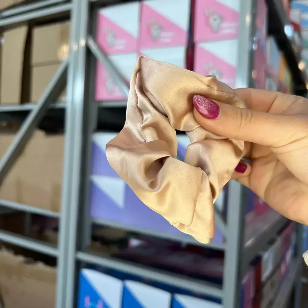 Colita para el cabello confeccionada en satén liso color beige, de textura suave y brillante. Su diseño minimalista aporta un toque elegante y delicado, ideal para complementar tanto peinados casuales como más formales. El satén ayuda a cuidar el cabello, evitando el frizz y la rotura. Un accesorio versátil que combina con todo.