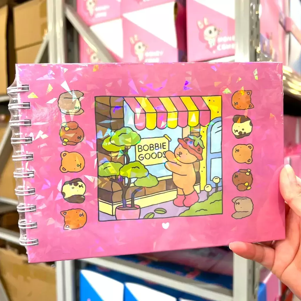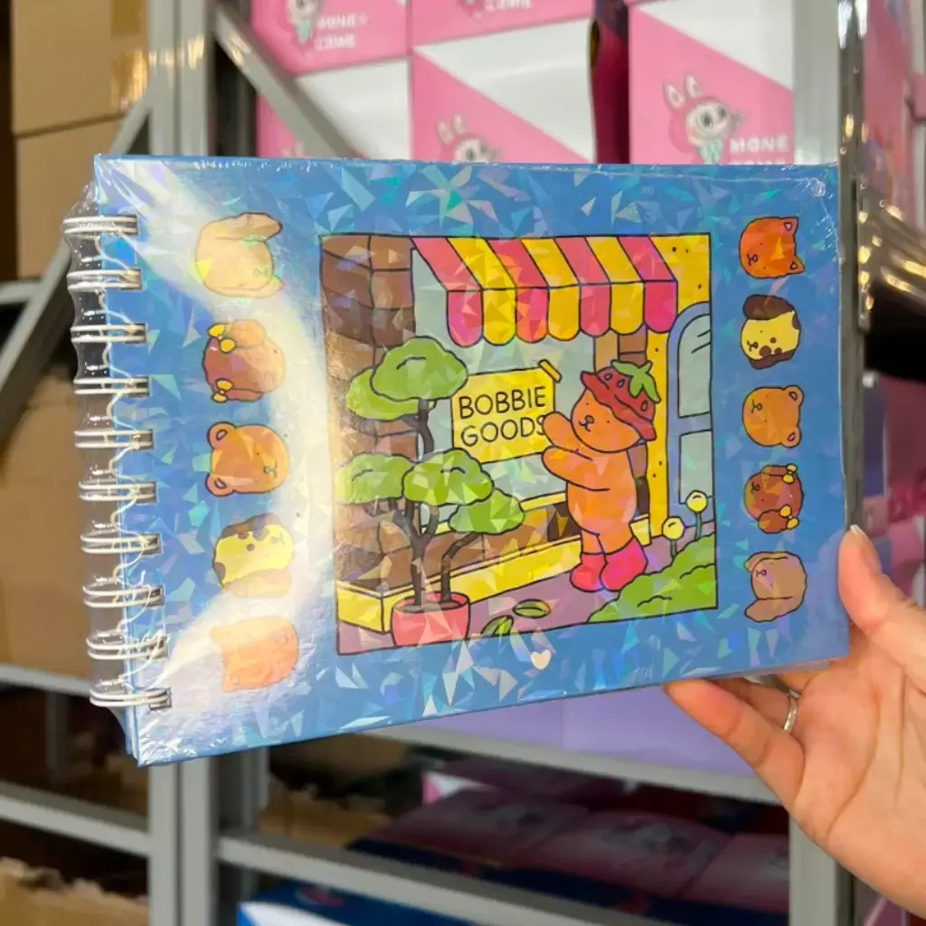 Cuaderno de diseño holográfico con espiral, tapa dura ilustrada con personajes Bobbie Good. Contiene páginas con escenas para colorear y dar rienda suelta a la creatividad. Ideal para niños, adolescentes y amantes de la papelería kawaii. Su formato práctico lo hace perfecto para usar en casa, la escuela o como regalo creativo.