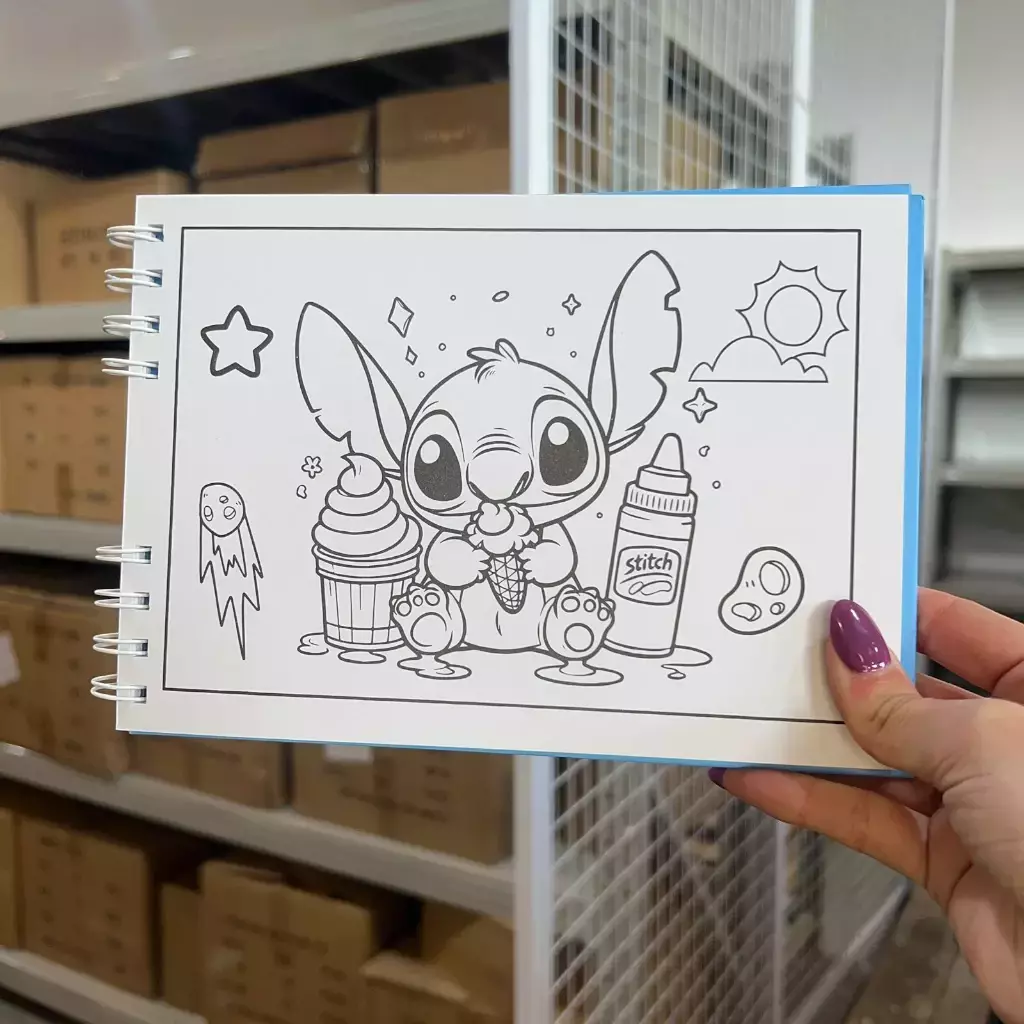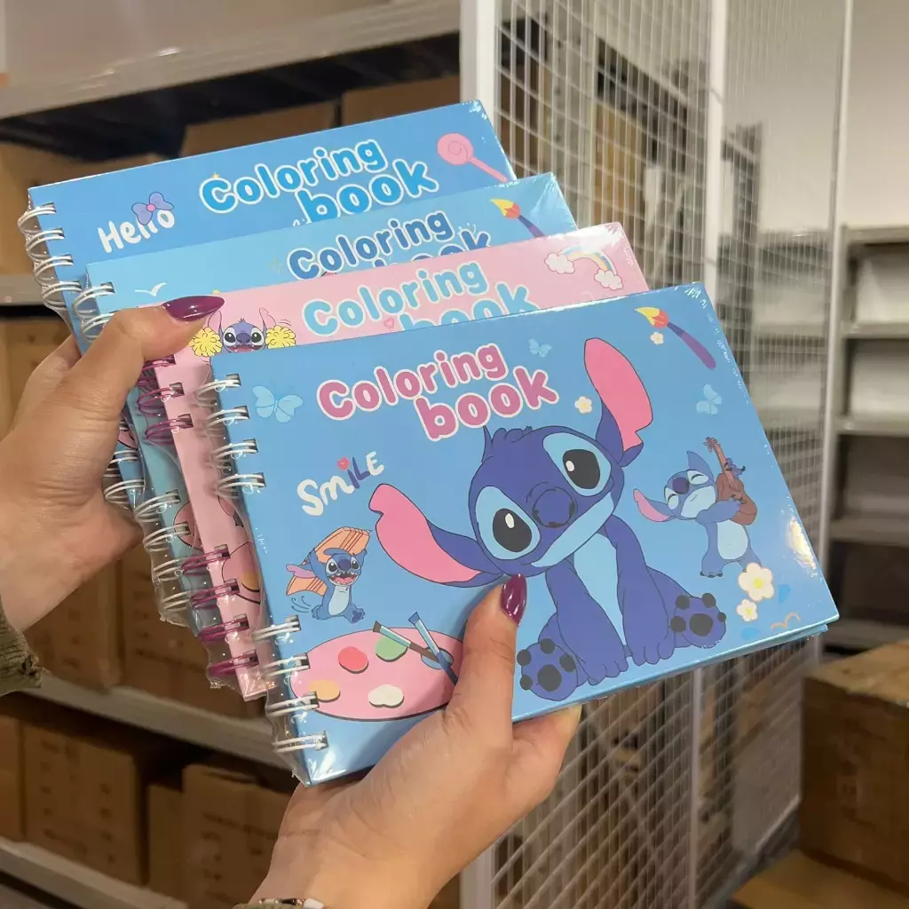 Divertite coloreando con estos libros de diseño de Capybara y Stitch. Cada uno incluye páginas con ilustraciones adorables para pintar y tapas a color con diferentes personajes. Su encuadernado anillado permite abrirlo completamente para colorear con comodidad. Ideal para niños, niñas o fanáticos de lo cute que buscan relajarse pintando.