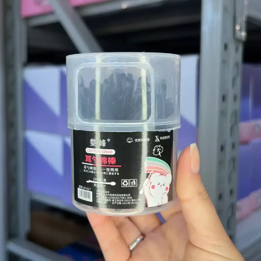 Estuche con 100 hisopos de algodon, prácticos y fáciles de guardar. Vienen en envase plástico con tapa que permite mantenerlos siempre limpios y listos para usar. Disponibles en varios colores.