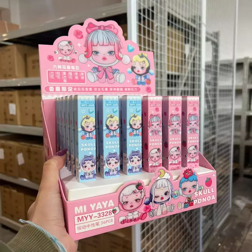 Sorpresas de lapiceras de gel con diseños exclusivos de Kuromi, Naruto, lotso, entre otros. Cada unidad viene en estuche individual ilustrado, con tinta negra de trazo fino (0.5 mm aprox.). Presentación en caja expositora ideal para venta minorista o mayorista. ¡Estilo kawaii que encanta!