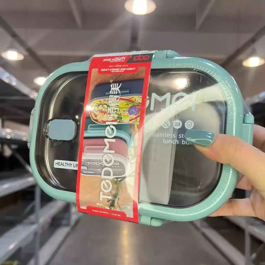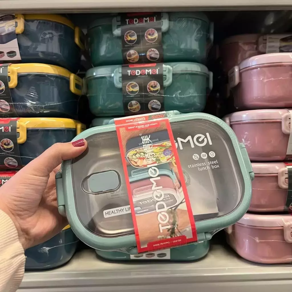Lunchera Tedemei cierre hermético a presión y diseño rectangular. Capacidad de 850ml. Incluye interior de acero 304 con compartimentos. Ideal para llevar almuerzos o colaciones de manera práctica y segura. No apto microondas.
