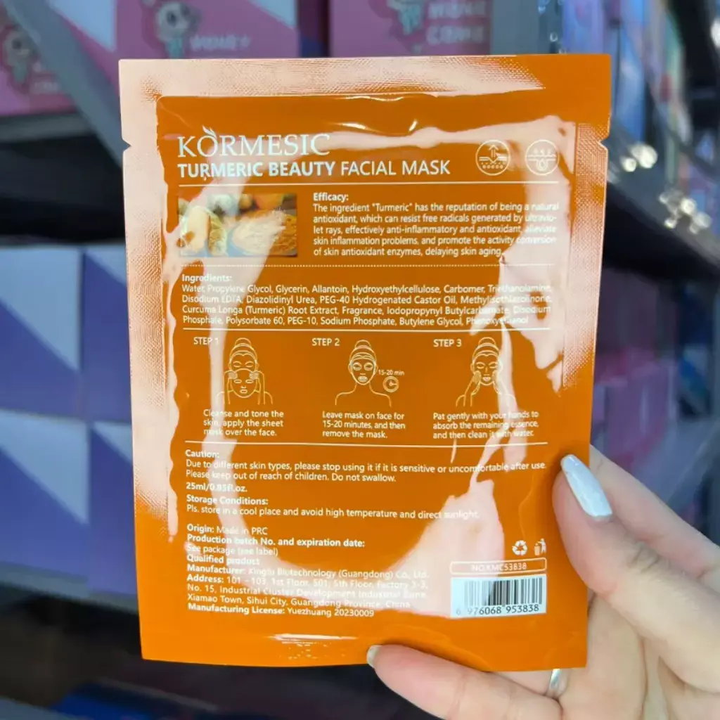 La mascarilla facial de cúrcuma Kormesic está formulada con extracto de raíz de cúrcuma, reconocido por sus propiedades antioxidantes y antiinflamatorias. Ayuda a combatir los radicales libres, reducir problemas de inflamación en la piel y retrasar los signos de envejecimiento. Su fórmula hidrata, nutre y mejora la elasticidad de la piel, dejándola más suave, luminosa y saludable. Tambien disponible de kiwi.