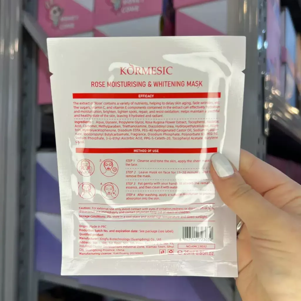 Mascarilla en tela con extracto de flor de rosa rugosa, vitamina C y vitamina E, ideal para hidratar y nutrir la piel en profundidad. Ayuda a reducir signos de envejecimiento, iluminar el rostro y mejorar la elasticidad de la piel. Deja una sensación fresca, suave y radiante después de cada uso. Formato individual de 25 ml.