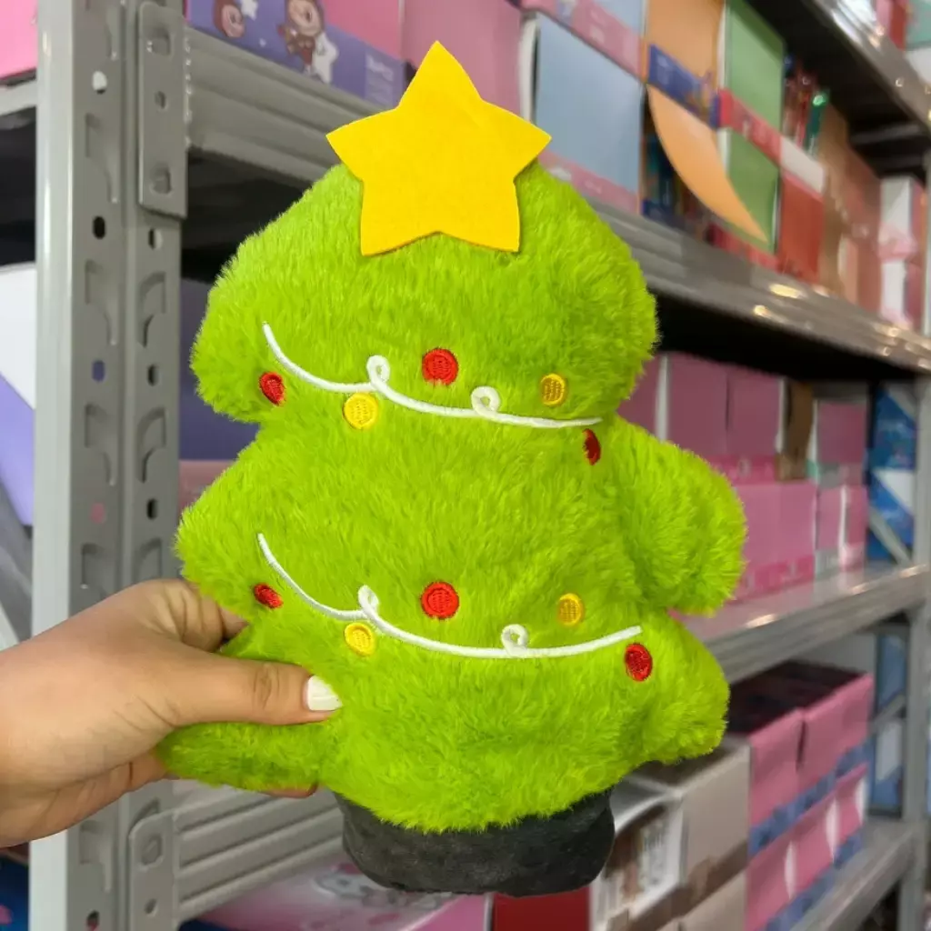 Peluches suaves y coloridos con diseños de navidad ideales para decorar o regalar. Modelos disponibles: arbol de navidad con estrella, muñeco de nieve con bufanda y gorro celeste, y casita roja con techo nevado y luces bordadas. Tacto suave, terminaciones de calidad y estilo festivo que llena de alegria cualquier ambiente.