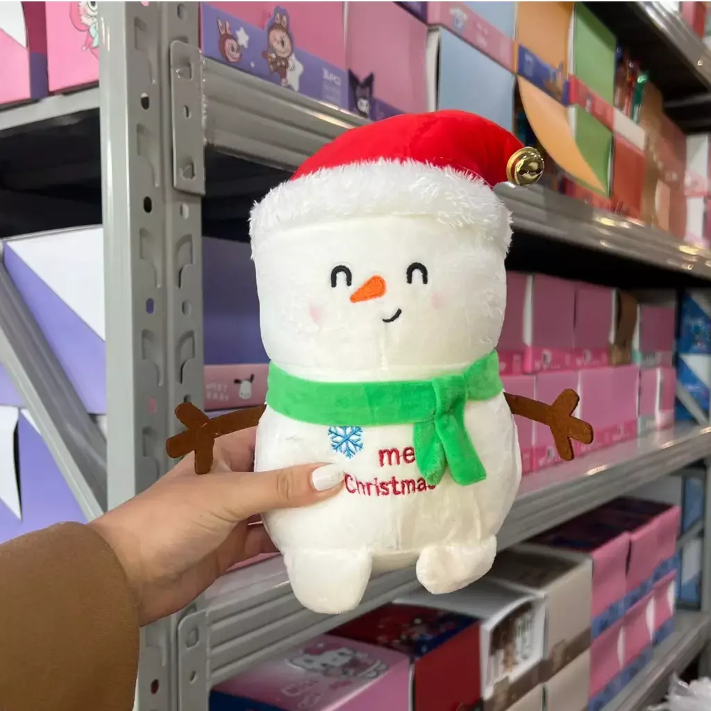 Peluches suaves y adorables con disenos navideños de Papa Noel y muñeco de nieve. Estan confeccionados en felpa esponjosa con detalles bordados y accesorios festivos como gorro rojo, bufanda y campanita. Ideales para decorar tu hogar en Navidad, regalar o coleccionar.