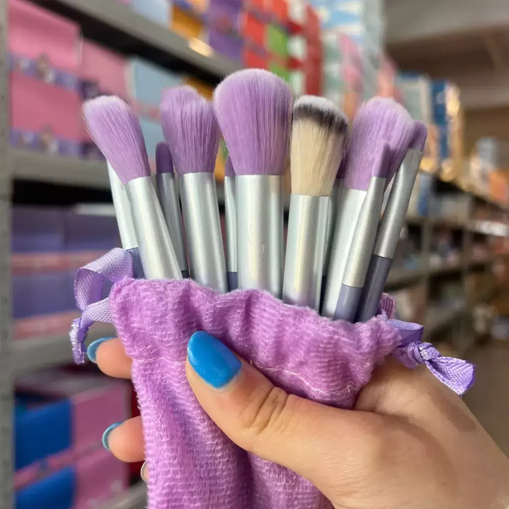 Set de brochas de maquillaje con estuche tipo bolsita de terciopelo, suave y practico para guardar y transportar. Incluye 12 brochas de diferentes tamaños y formas para aplicar polvo, rubor, base y sombras, logrando un acabado uniforme y profesional. Ideal para uso diario o como regalo.