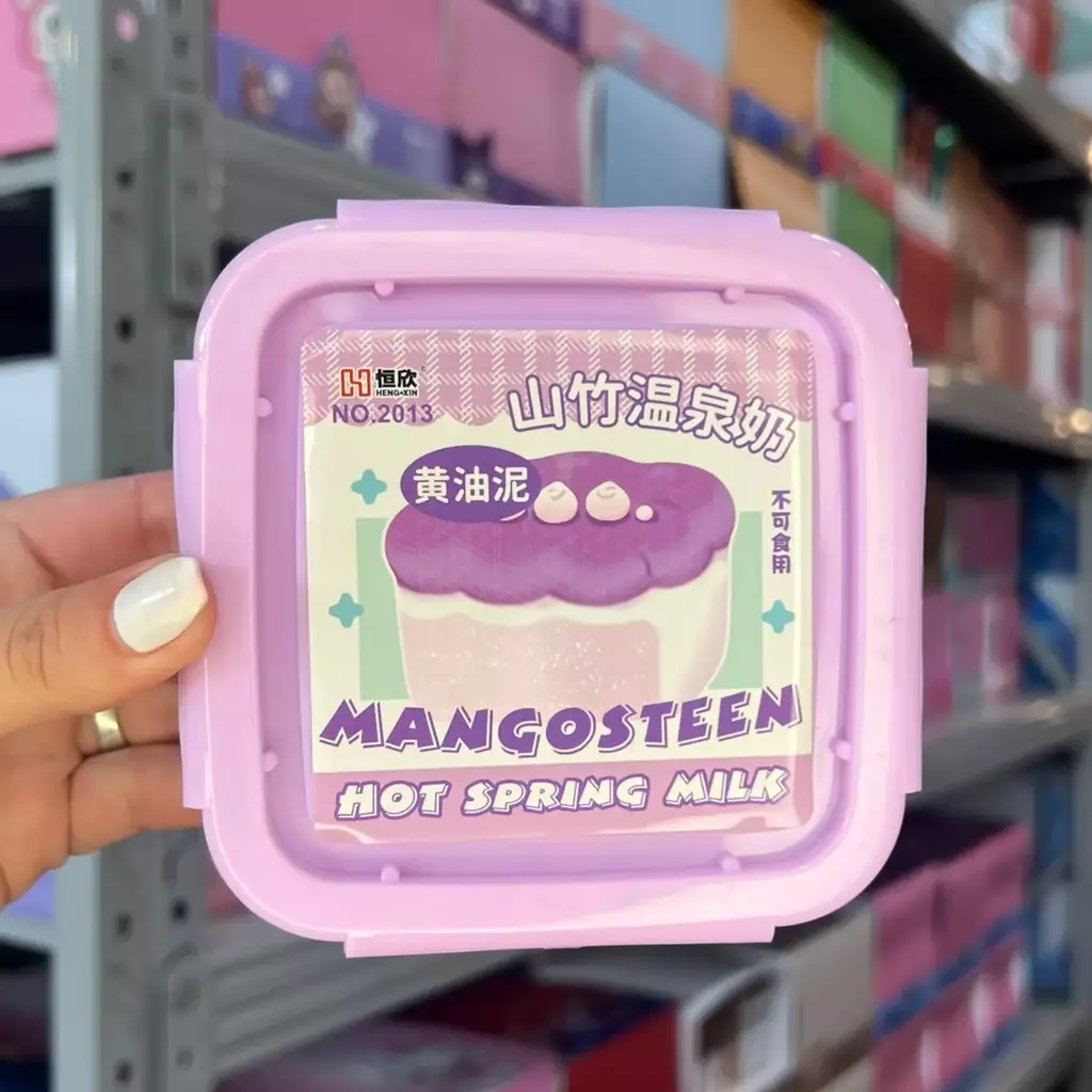 Slime con textura tipo crema en pote cuadrado con tapa hermetica. Suave y estirable, ideal para jugar, relajarse y liberar estres. Disponible en colores surtidos, se conserva perfectamente gracias a su envase plastico reutilizable.