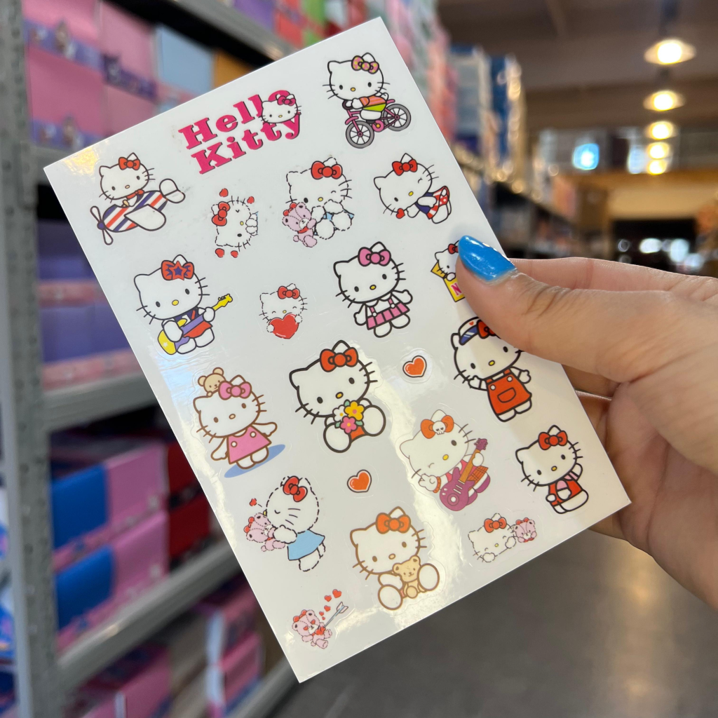 Planillas de stickers holograficos con personajes Sanrio como Hello Kitty, Kuromi, My Melody y Cinnamoroll. Cada hoja incluye diseños kawaii con acabado brillante, perfectos para decorar cuadernos, sobres, celulares y cualquier superficie. Modelos surtidos.