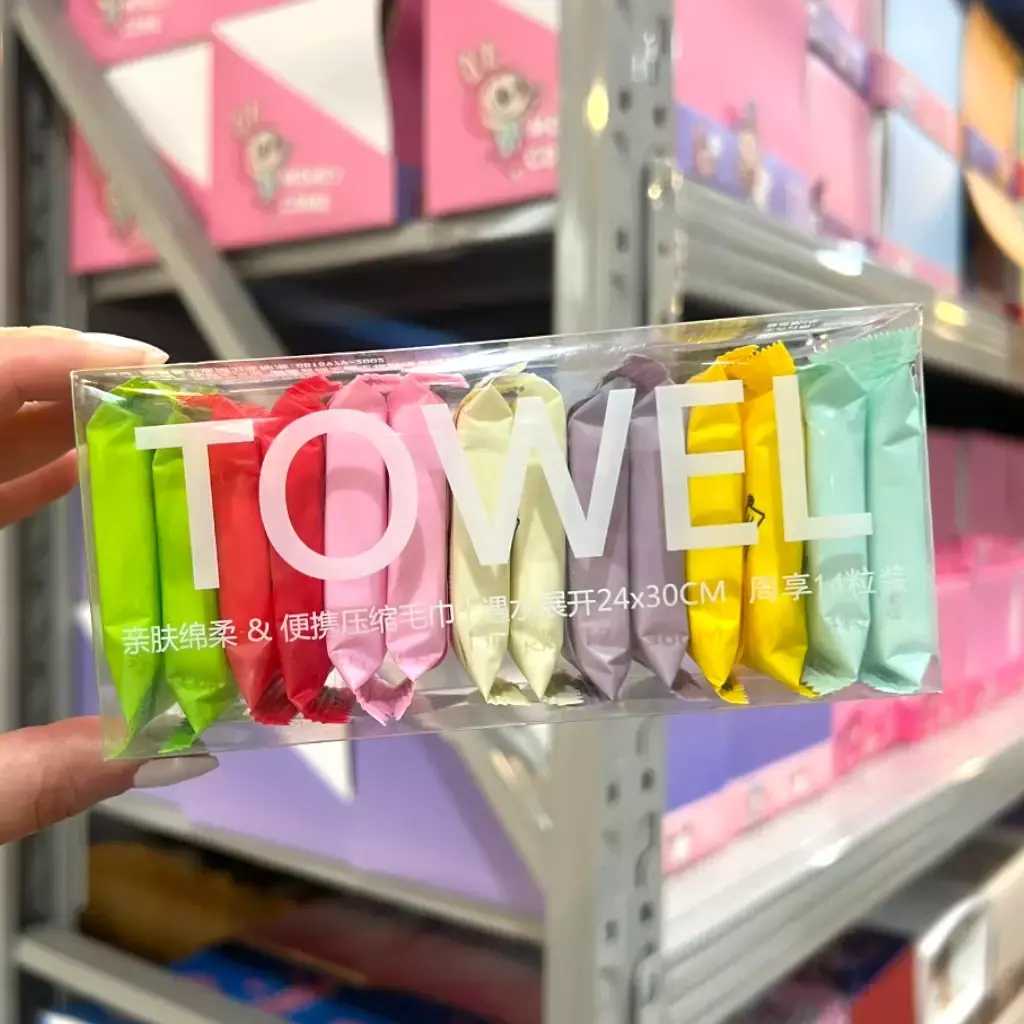 Set de toallas comprimidas de viaje pocket, práctico y fácil de llevar. Cada toallita viene en envoltorio individual, lista para expandirse con agua y convertirse en una toalla suave y absorbente de 24x30 cm. Ideales para viajes, salidas, gimnasio o uso diario. Incluye 14 unidades en colores variados, presentadas en caja transparente.